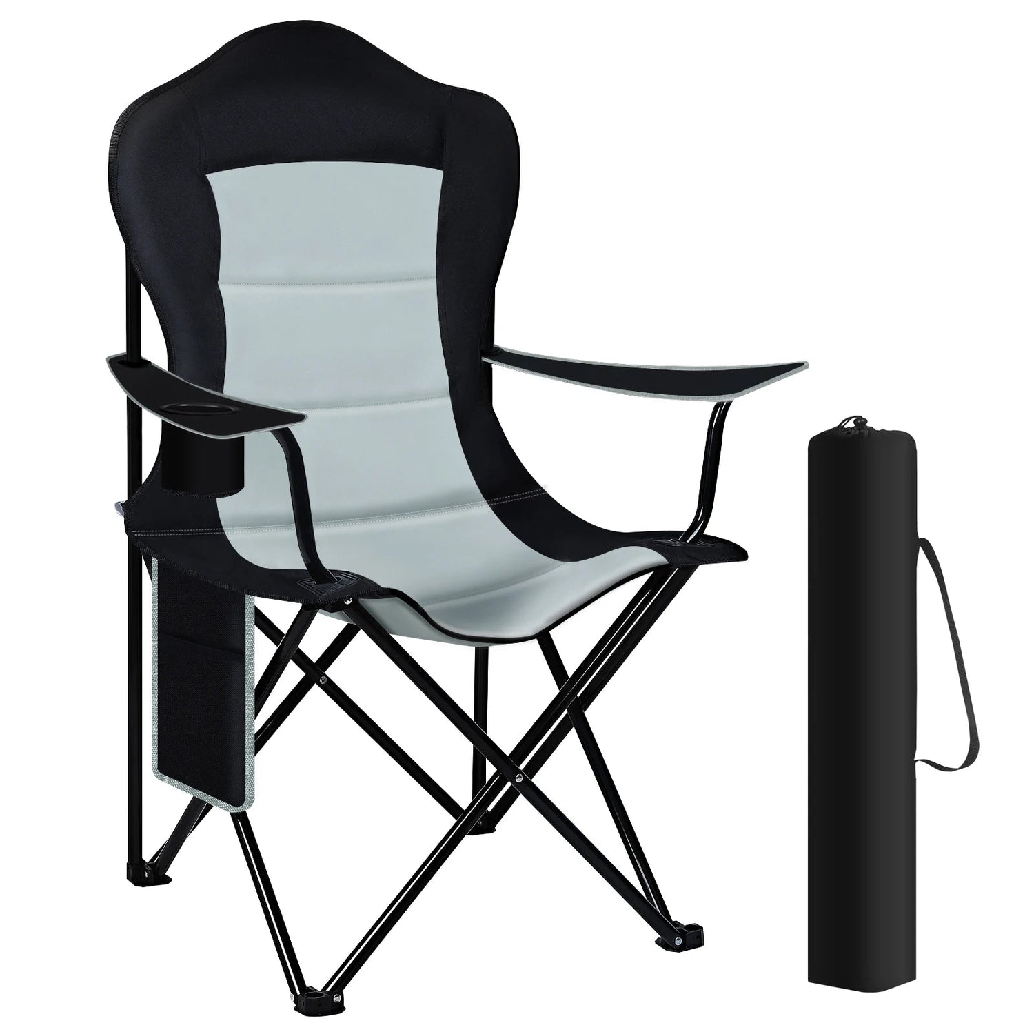- Additionally, this camping chair features a convenient cup holder and side pocket for storing essentials such as water bottles, phones, books, snacks, and more. With no assembly required, simply unfold this versatile chair and use it for all your outdoor needs.