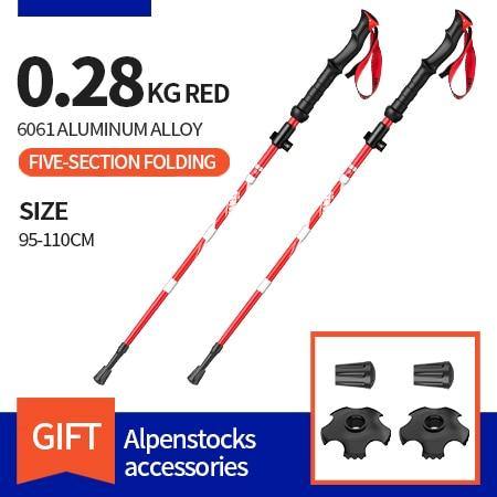 - Short Handle (Red): Adjustable length from 95cm to 110cm, weighing just 280g per pole.