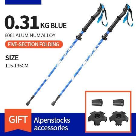 - Long Handle (Blue): Adjustable length from 115cm to 135cm, weighing 310g per pole.