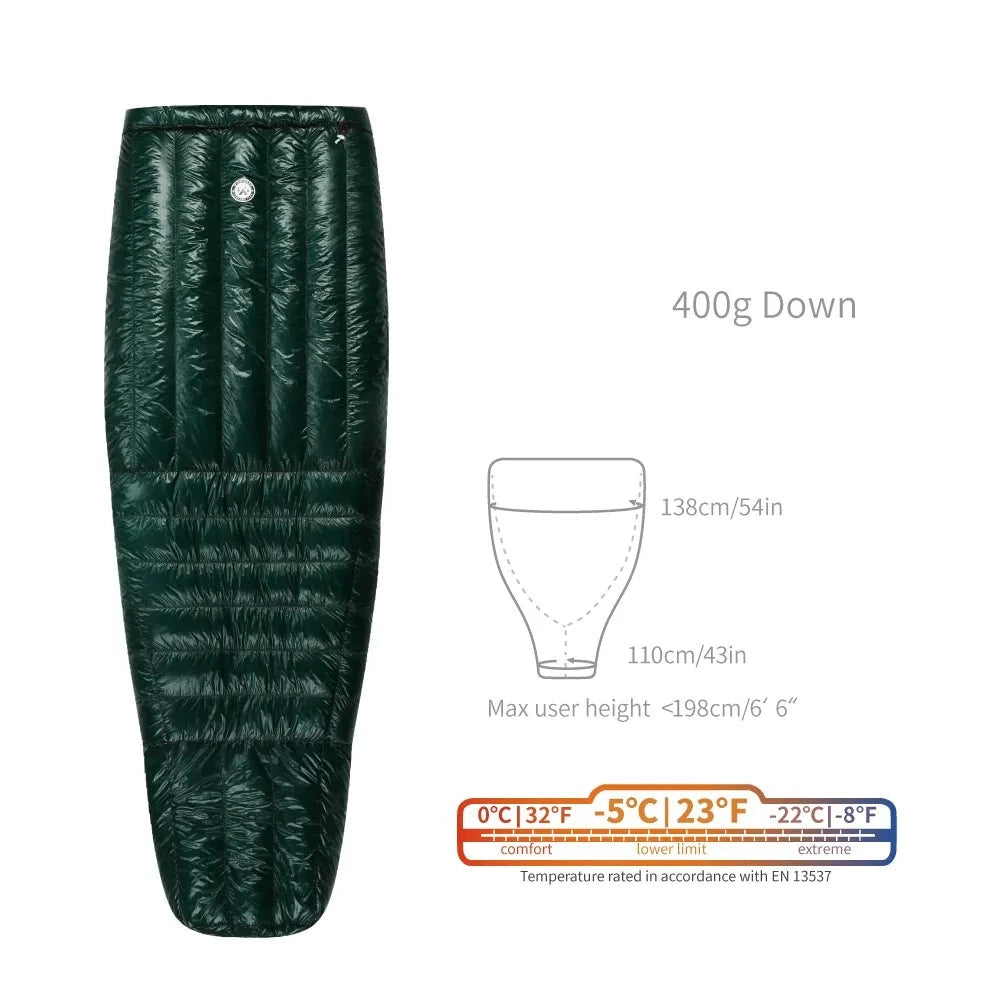 The Down Sleeping Bag Ultralight offers the ideal balance of warmth, comfort, and portability for outdoor adventurers. Get ready to sleep soundly and wake up refreshed, no matter where the trail leads you.